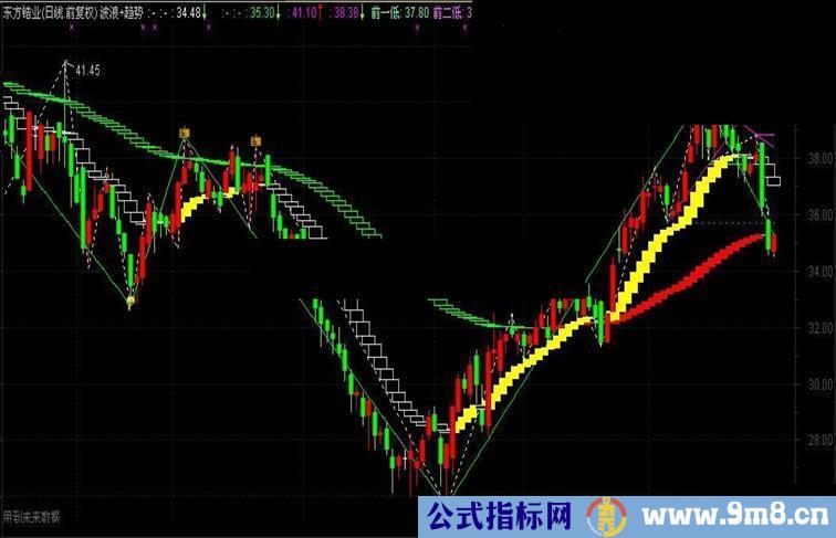 涨:IF(短趋势线>REF(短趋势线,1),短趋势线,DRAWNULL),COLORRED,LINETHICK3;