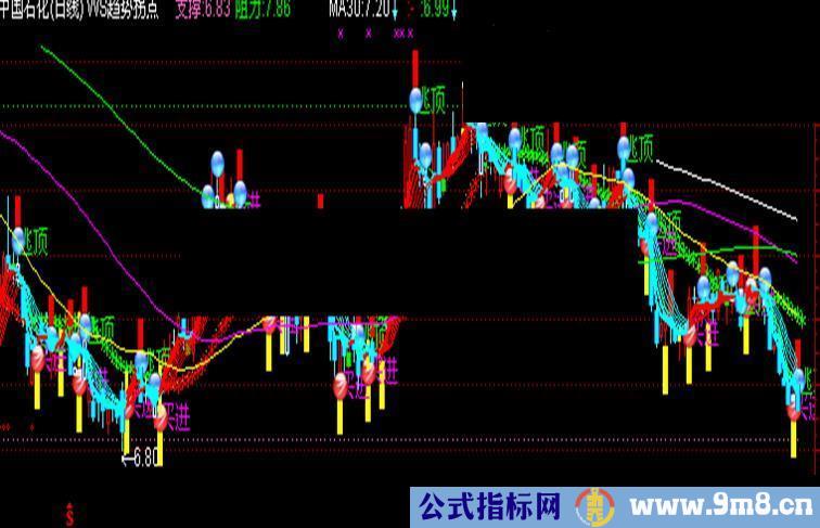 指标说明:以20日线确定黄底红顶。同时以20日高低点确定压力支撑线
