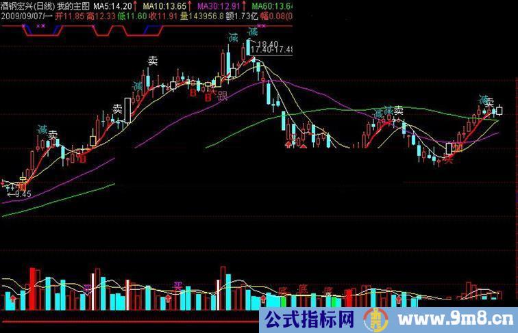 DRAWTEXT(注意 AND 卖!=1,HIGH*1.02,'减'),COLORLIBLUE;
