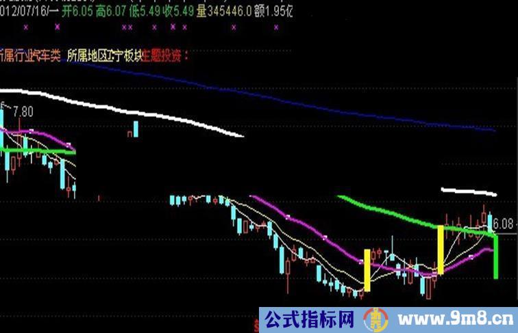 STICKLINE(涨停,OPEN,CLOSE,3,0),COLORYELLOW;