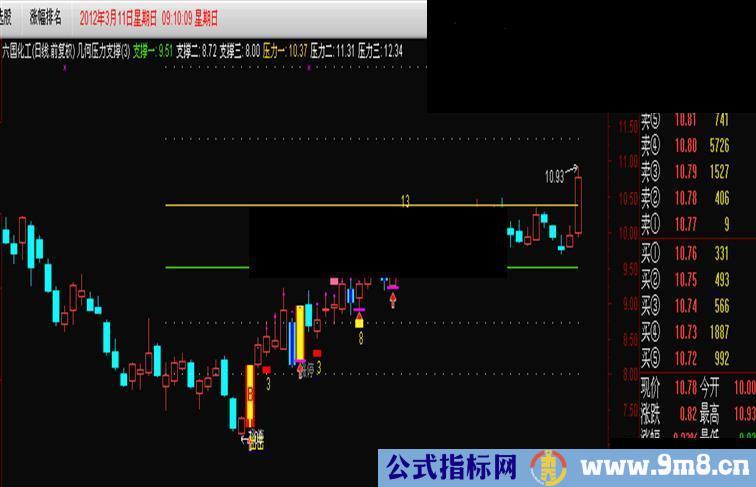 支撑一:IF(CURRBARSCOUNT<=50,ZC1,DRAWNULL),COLOR00F24F;