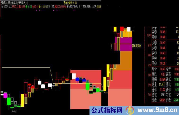 STICKLINE(BB10>1 AND AA10>REF(AA10,1), AA10,REF(AA10,1),0.4,1),COLORCC66FF;