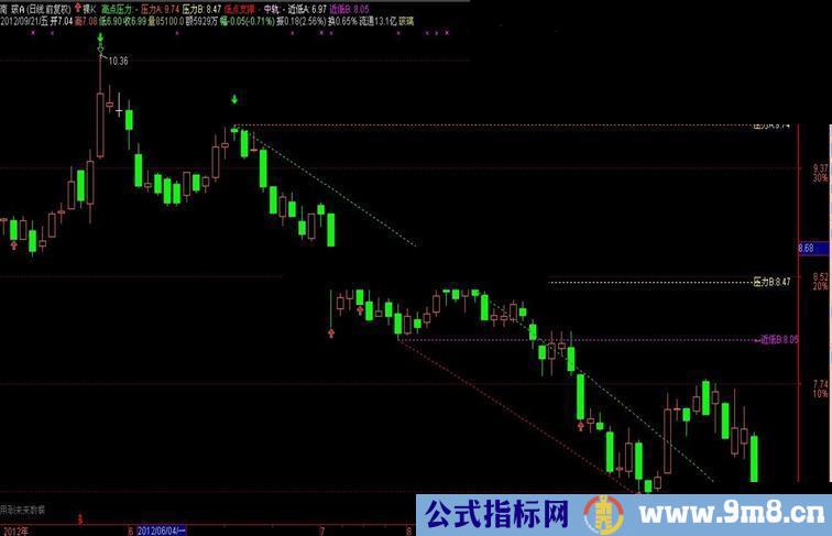 高点压力:DRAWLINE(CURRBARSCOUNT=GDCS2,H,CURRBARSCOUNT=GDCS1,H,1) COLORGREEN,DOTLINE;