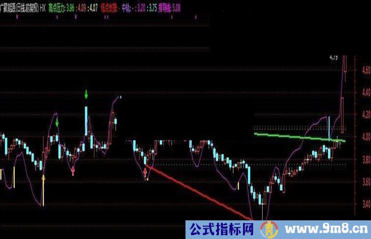 高点压力:DRAWLINE(CURRBARSCOUNT=GDCS2,H,CURRBARSCOUNT=GDCS1,H,1) COLORGREEN,LINETHICK2;