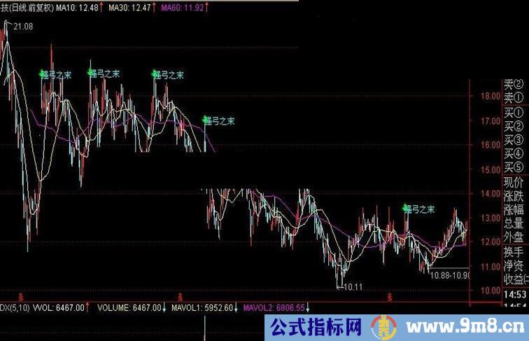 DRAWTEXT(DB AND C/LLV(L,60)>1.1,H,'强弓之末'),COLORCYAN;