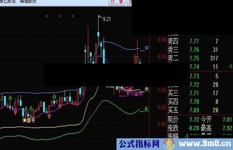跌穿中轨:=O<短底 AND O<中底 AND O>长底;