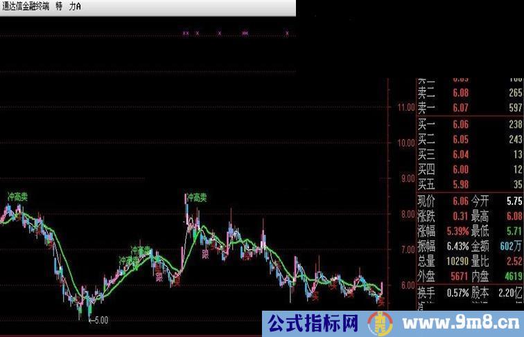 DRAWTEXT(FILTER(卖=1,1),HIGH*1.02,'冲高卖'),COLORGREEN;