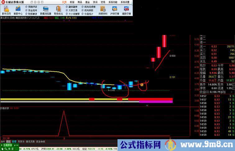 说明:买入条件股是价触到底虚线后,出现黄色信号介入;触到顶虚线,卖出