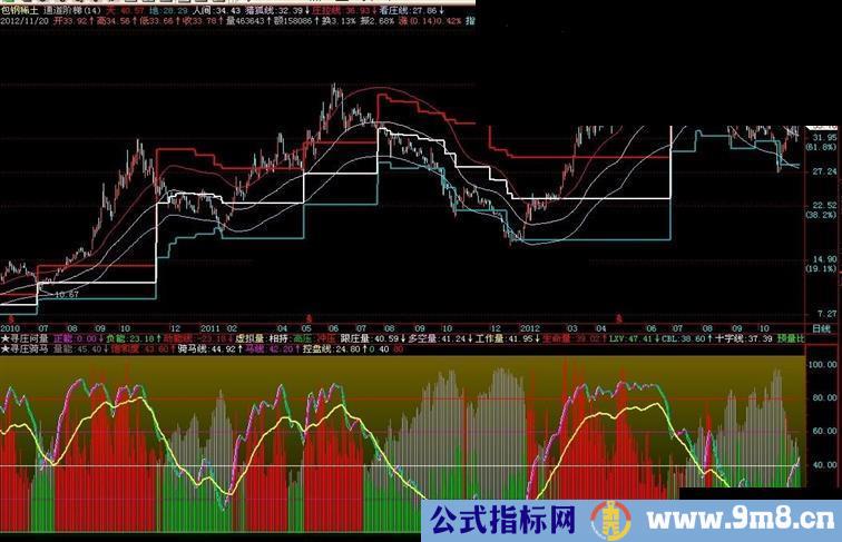 一周来对前期的一主三副进行了加工整理,这里先贴出主图中的通道阶梯源码,如果有的感到线条太多,可以进行美化处理,因为考虑到指标的通用性,这里只把指标的基本线条放出,如果有的通达信版本过低,WMA可能通过不了,就将它改为MA效果有所差别。用法说明:趋势看通道,强弱看阶梯。庄拉线既是追涨线也是止赢线,看庄线既是回调支撑线也是止损线;如果出现股价几乎同时跌破庄拉线和天线(此时天线出现垂直上升状)牛市行情结束的概率大于80%。另外,有的认为HHV和LLV会漂移,但是这里是进行了向前赋值的处理,是不会漂移的。其它的详细用法可自己体会理解。