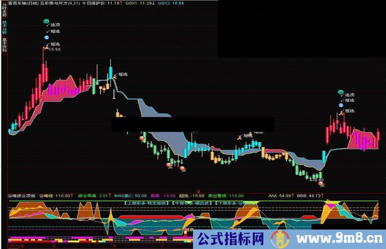 将《乘与开方主图指标》进一步充实、使之更加完美与实用,现将刚刚编辑完尚不成熟的现在的升级版---《五彩乘与开方主图指标》奉献给大家。指标中将股价走势与两条趋势线形成的不同状态而分别以五种颜色标示,更加实用、简洁、美观。(其中的玄机还是自己去体验好些)!这也是拍砖引玉的目的,希望学友们进一步完善