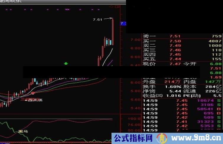 穿四线:=FILTER(H>A7 AND LREF(A1,1)AND A2>REF(A2,1)AND A4>REF(A4,2)AND (A7-A8)/A8<0.04 AND C>O AND (H-C)/(C-O)<0.4,3);