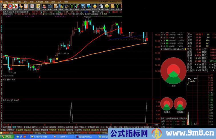 M15:=MA(C,15),COLORFFFF00,LINETHICK1;{黄色}