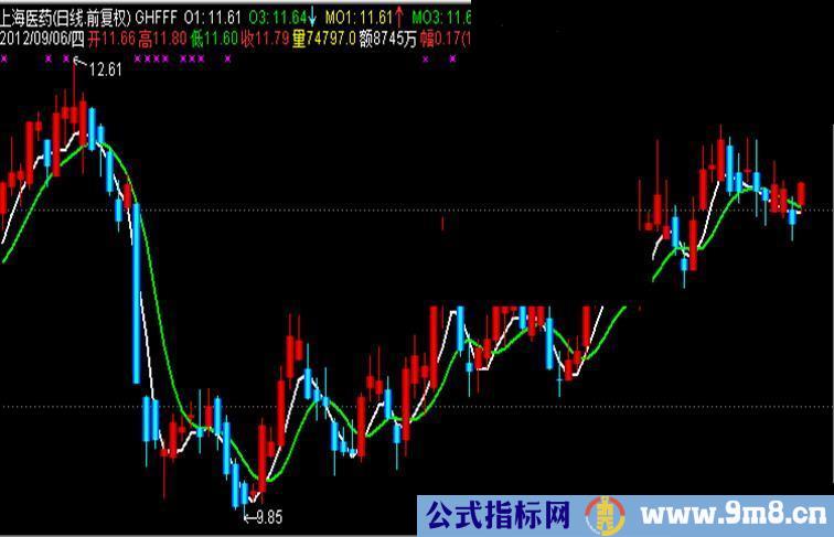这个主图可以说都是网上得来的源码,只是根据自己的分析,在买卖点让K线变了色,提供给那些没有找到该源码的同学吧。用法一看便知,我这人懒,所以做的主图也好,副图也好,都是直接提示买卖的,主要还是人懒,懒得动脑分析,嘿嘿,其实这样不好。K线变红买入,变蓝卖出,就是卖点出的不太及时,在我的软件里这个主图我是加了一些别的买卖提示的,买卖点指标也都是网上得来的,为了给大家一个更广阔的改造空间,所以只取了核心部分出来。好了,睡觉去,快该开盘了,哈哈。
