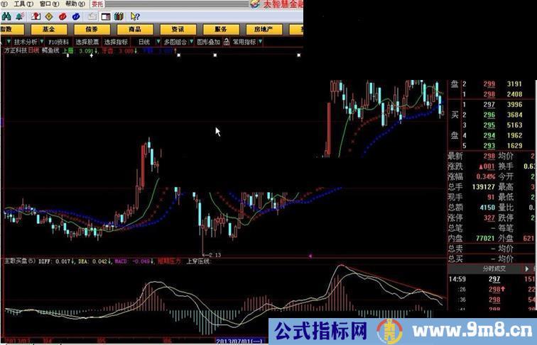形成原理和用法: 鳄鱼线是运用分形几何学和非线性动力学的一组平均线(实际上就是一种比较特别的均线)。它分为蓝、红、绿三条。蓝线被称为鳄鱼的颚部,红线被称为鳄鱼的牙齿,绿色被称为鳄鱼的唇吻。它们的构造方法如下:颚部——13根价格线的平滑移动均线,并将数值向未来方向移动8根价格线;牙齿——8根价格线的平滑移动平均线,并将数值向未来方向移动5根价格线;唇吻——5根价格线的平滑移动均线,并将数值向未来方向移动3根价格线。 鳄鱼线的基本使用方法是当颚部、牙齿、唇吻纠缠在一起时,我们便进入了观望期(鳄鱼休息了);当唇吻在牙齿以上,牙齿在颚部以上时,我们便进入了多头市场(颚鱼要开始吃牛肉了);当唇吻在牙齿以下,牙齿在颚部以下时,我便进入了空头市场(鳄鱼要开始吃熊肉了)。简单来说鳄鱼线是交易员的指南针,它能告诉交易员市场正处于什么状态,并保证交易员能在行情中进行交易,在市场休整时离场观望。