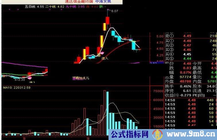 DRAWTEXT(VR1X,五日线1*0.95,'进入'),COLOR00FFFF,LINETHICK2;