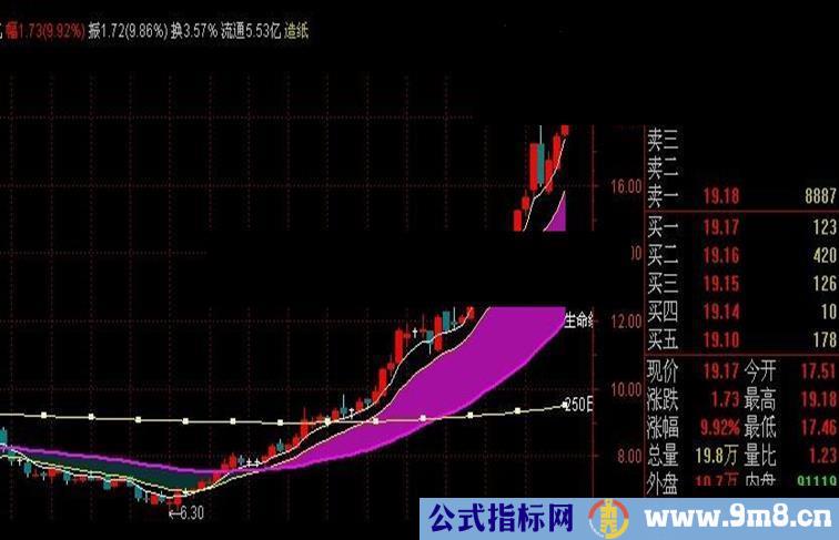 DRAWBAND(EMA(C,12),RGB(166,16,160),EMA(C,50),RGB(10,50,50));DRAWKLINE(H,O,L,C);