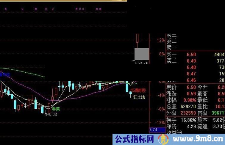 DRAWTEXT(CROSS(MA3,MA4),MA4*0.98,'风调雨顺'),COLOR0000FF;