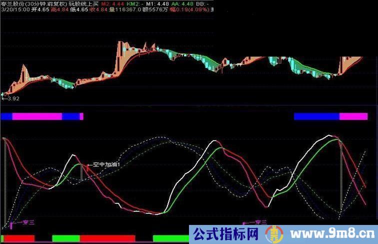 M2:((EMA(VC,7)+EMA(VC,9))/2+EMA(VC,8))/2,COLORRED,LINETHICK2;