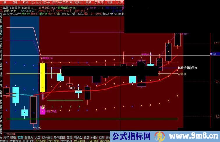 上升:=IF(红轨道>=绿轨道,绿轨道,DRAWNULL),COLORRED,LINETHICK2;