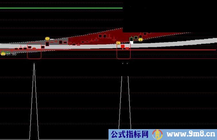STICKLINE(资金选股=1 AND (H-C)<(C-L),CLOSE,OPEN,3,0),COLORRED;