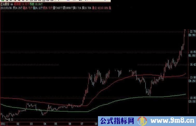 平均成本:=((COST(19.1)*0.809+COST(38.2)*0.618+COST(61.8)*0.382+COST(80.9)*0.191)/2+(COST(19.1)+COST(80.9)+COST(38.2)+COST(61.8))/4)/2;
