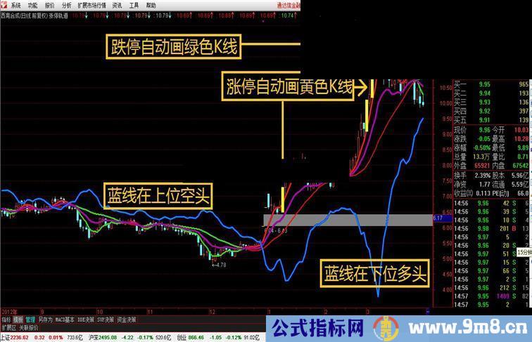 中线强弱拐点3:EMA(股道*C/100+基础,3),COLORFFFF00,LINETHICK0;