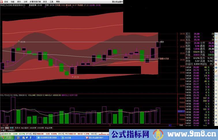 利润线:MA(L+(H-L)/2,25)*0.95+(MA(L+(H-L)/2,25)*1.15-MA(L+(H-L)/2,25)*0.95)*4/5,COLOR6699FF;