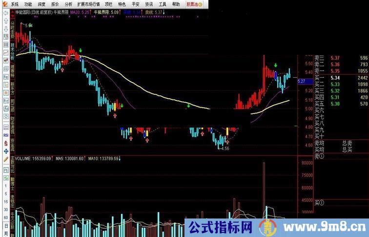 STICKLINE((买线 < 卖线),CLOSE,OPEN,0.4,1),COLORFFFF00;