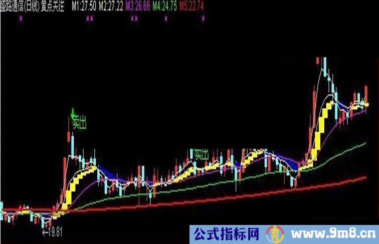 DRAWTEXT(CROSS(VAR2,VAR3),HIGH*1.02,'卖出'), COLORGREEN;