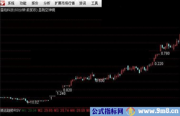 快过节了,拿出一个在主图上--->显示跳空缺口和-->跳空价格的实用公式给推荐的好友用,请放在副图夹内,在主图上右键点第3行 主图指标 ->选叠加其它指标 找到它即可