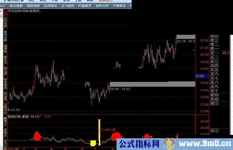 VAR1:="DMI.PDI"(12,6);VAR2:="DMI.MDI"(12,6);VAR3:=VAR1>65 AND VAR1>REF(VAR1,1);VAR4:=LLV(VAR1,0);VAR5:=BARSLAST(VAR4=VAR1);VAR6:=(0-REF(VAR2,4))/(VAR4-REF(VAR2,VAR5))>2;VAR7:=VAR1>REF(VAR1,1);VAR8:=VOL>2*MA(VOL,30);VAR9:="DMI.ADX"(12,6);VARA:="DMI.ADXR"(12,6);VARB:=CLOSE>MA(CLOSE,30) AND CLOSEREF(MA(CLOSE,30),1);VARD:=BARSLAST(CROSS(MA(CLOSE,5),MA(CLOSE,10)))REF(EMA(CLOSE,30),2);VAR11:=IF(VARF=1,50,0);VAR12:=CROSS(VAR2,VAR1) AND CROSS(VARA,VAR9);VAR13:=CROSS(VAR2,VAR1) AND CROSS(VAR9,VARA);VAR14:=VARB AND VARC AND VARD AND VAR10 AND VAR6 AND VAR7 AND VAR8*50;VAR15:=BARSLAST(CROSS(VAR2,VAR1)=1);VAR16:=BARSLAST(CROSS(VAR1,VAR2)=1);VAR17:=HHV(VAR1,VAR16);VAR18:=BARSLAST(VAR1=VAR17);多空:EMA((CLOSE-MA((2*CLOSE+HIGH+LOW)/4,30))/MA((2*CLOSE+HIGH+LOW)/4,30)*100,3),COLORWHITE;0,COLORRED;STICKLINE(FILTER(VARF=1,5) AND 多空<-10,50,0,15,0),COLORF00FF0;STICKLINE(FILTER(VARF=1,5),50,0,8,0),COLORYELLOW;VAR19:=VAR3 OR VAR12 OR VAR13*100;VAR1A:=VAR13*100;DRAWTEXT(FILTER(VARF=1,3),25,'买入★之星'),COLORRED ;STICKLINE(多空<-10,0,多空,0.85,0),COLORYELLOW;STICKLINE(多空>10,0,多空,0.95,0),COLORRED;