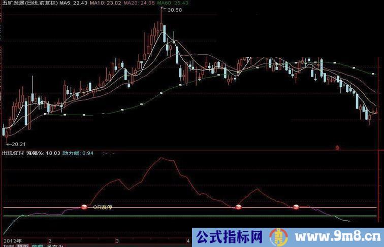IF(动力线>1.03,动力线,DRAWNULL),COLORRED;