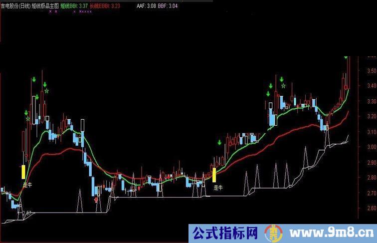 DRAWTEXT(CROSS(短线BBI,长线EBBI),L-0.13,'走牛') ,COLORYELLOW;