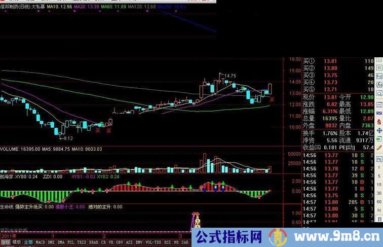 DRAWTEXT(CROSS(买线,卖线),LOW*0.98,'买'),COLORRED,LINETHICK2;