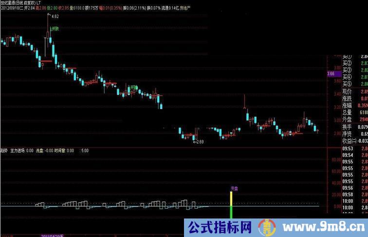 DRAWTEXT(CROSS(REF(A4,1),C) AND A4,H,'↓开跌'),COLORGREEN;