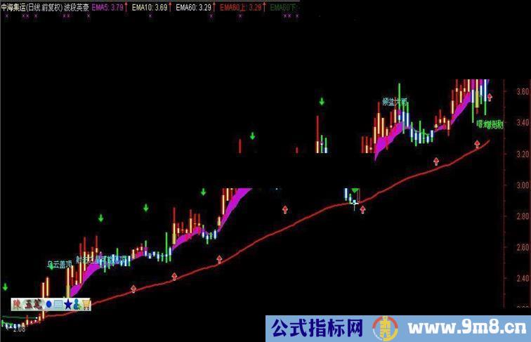 EMA60上:IF(EMA60>=REF(EMA60,1),EMA60,DRAWNULL),COLORRED,LINETHICK2;