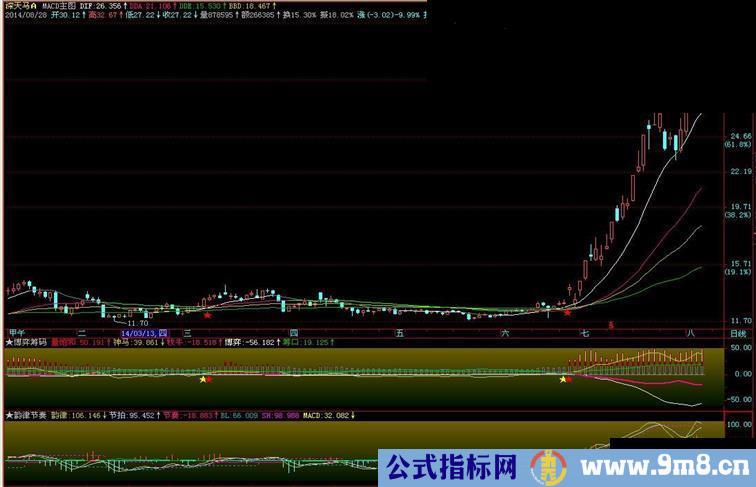 所谓加强版,是在原指标的基础上进行了增减,隐匿了DEA线,增加了更大周期的DDA,DDE二条线;短线关注DIF的变色,波段关注DDA的得失;另外增加了红色五角星标注,用它进行选股时要配合均线状态和量能变化。