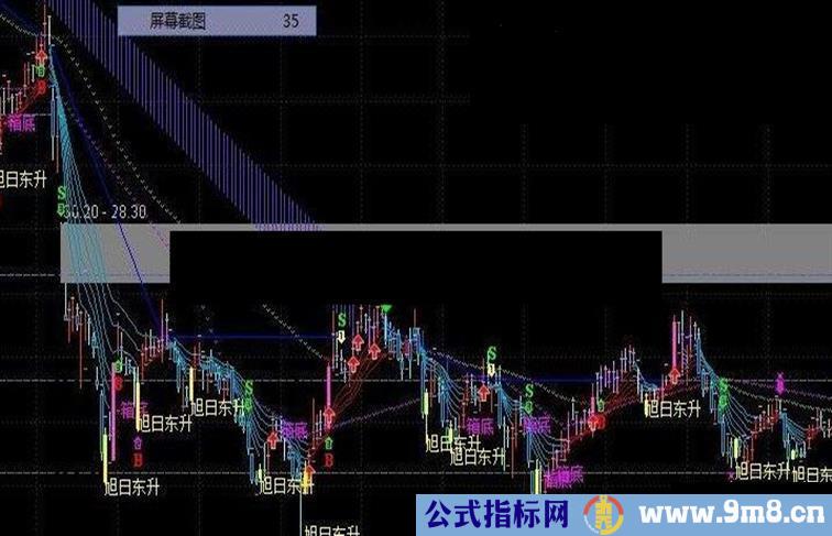 中轴趋势线:=DRAWTEXT(新低 AND CROSS(新低,中轴),中轴,1);