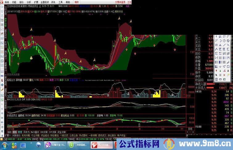 B买:IF(CROSS(指导线,界) OR CROSS(买线YGB,卖线YGB),C,DRAWNULL),COLORMAGENTA,NODRAW;