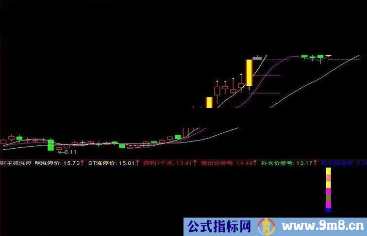 STICKLINE(涨停,H,L,0,0),COLORYELLOW;