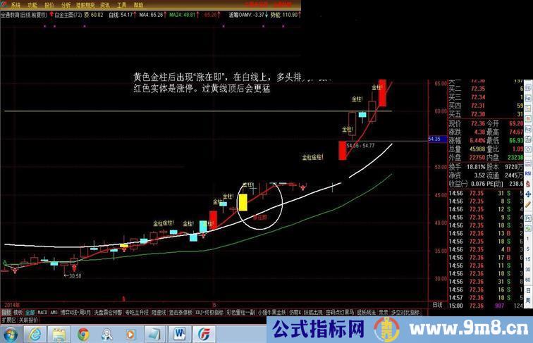 DRAWTEXT(黄金!,C*1.04,'金柱!'),COLORYELLOW;