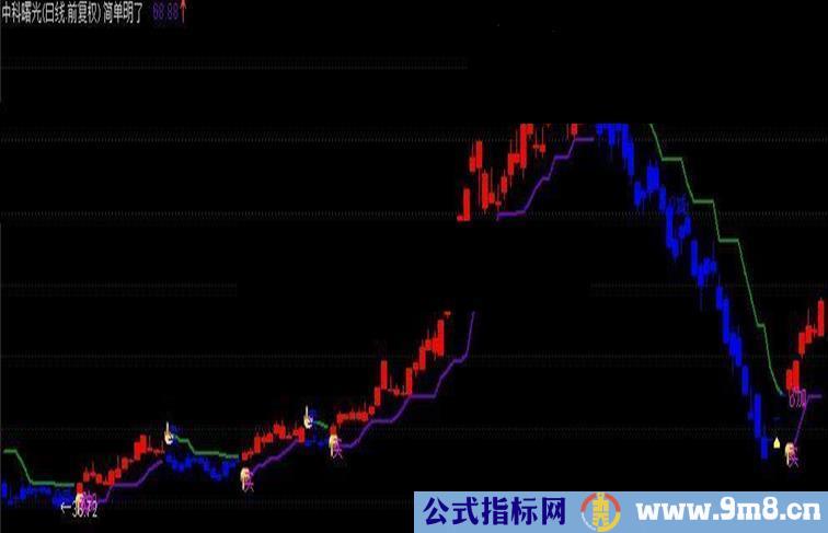 DRAWTEXT(FILTER(((HH1 < REF(HH1,1)) AND (HH1 < LL1)),90),LOW,'♂加'),COLORFF00FF;