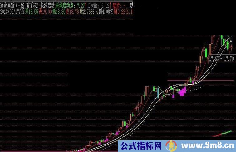 起步:IF((RS1 >58),长线启动点,DRAWNULL),,COLORRED,LINETHICK2;