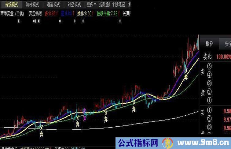 STICKLINE( CLOSE>OPEN AND 买线<卖线,CLOSE,OPEN,8,1),COLORAAAA00;