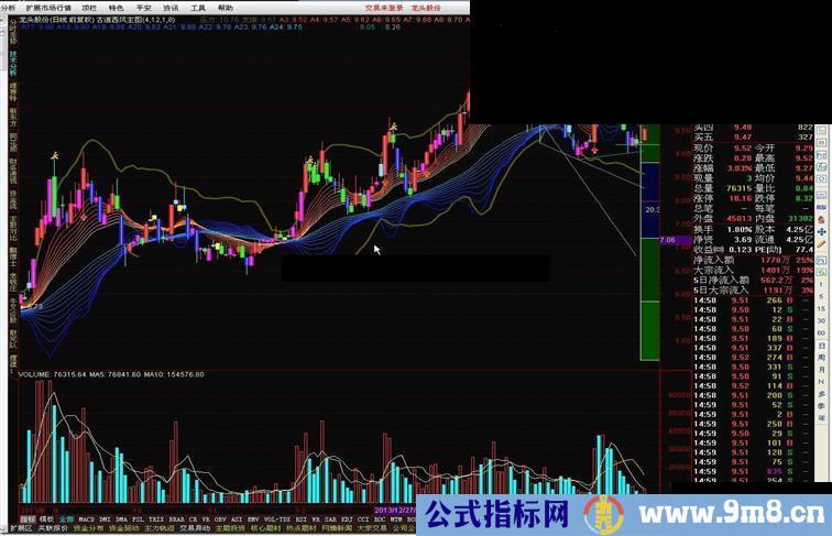 快到底:=IF(LLV(MMB-MMA,12)>0,0,-20),LINETHICK2,COLORGREEN;