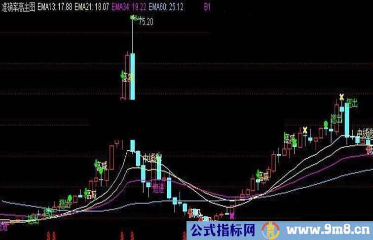 源码如下:具体怎么用,自己去体会。 EMA13:EMA(C,13),COLORWHITE; EMA21:EMA(C,21),COLORYELLOW; EMA34:EMA(C,34),COLORFF00FF; EMA60:MA(C,60),COLORFFCC66; VAR2:=(2*CLOSE+HIGH+LOW)/4; VAR3:=IF(YEAR>=2099 AND MONTH>2,0,1); VAR4:=LLV(LOW,5); VAR5:=HHV(HIGH,4); 散户:=EMA((VAR2-VAR4)/(VAR5-VAR4)*100,4)*VAR3; 庄家:=EMA(0.667*REF(散户,1)+0.333*散户,2)*VAR3; DRAWTEXT(CROSS(散户,庄家) AND 散户<50 AND 29<散户,L-0.05,'短进'),COLORMAGENTA; DRAWTEXT(CROSS(庄家,散户) AND 散户>40 AND 71>散户,H+0.05,'短出'),COLORGREEN; DRAWTEXT(CROSS(散户,庄家) AND 散户<30,L-0.05,'低吸'),COLORWHITE; DRAWTEXT(CROSS(庄家,散户) AND 散户>70,H+0.05,'高减'),COLORYELLOW; DRAWICON(CROSS(散户,庄家) AND 散户<30,L-0.05,1); DRAWICON(CROSS(庄家,散户) AND 散户>70,H+0.05,2); VAR9:=CLOSE-REF(CLOSE,5); VARA:=EMA(EMA(VAR9,5),5)/EMA(EMA(ABS(VAR9),5),5); VARC:=EMA(EMA(VAR9,20),20)/EMA(EMA(ABS(VAR9),20),20); 卖出:=IF(VARA>0 AND CROSS(VARC,VARA),90,100); DRAWTEXT(VARA>0 AND CROSS(VARC,VARA),H+0.05,'中线逃!'),COLORYELLOW; DRAWICON(卖出<0,H+0.05,2); 买线:=EMA(CLOSE,2); 卖线:=EMA(SLOPE(CLOSE,21)*20+CLOSE,42); B1:IF(CROSS(买线,卖线),L-0.02,DRAWNULL),CROSSDOT,LINETHICK3,COLORMAGENTA; S1:IF(CROSS(80,RSI)*30,H+0.02,DRAWNULL),CROSSDOT,LINETHICK3,COLORYELLOW; VC:=((CLOSE-MA(CLOSE,6))/MA(CLOSE,6)*100+(CLOSE-MA(CLOSE,24))/MA(CLOSE,24)*100+(CLOSE-MA(CLOSE,32))/MA(CLOSE,32)*100)/3; S2:IF(VC>20 AND FILTER(VC< REF(VC,1),5),H+0.02,DRAWNULL),CIRCLEDOT,LINETHICK3,COLORGREEN;