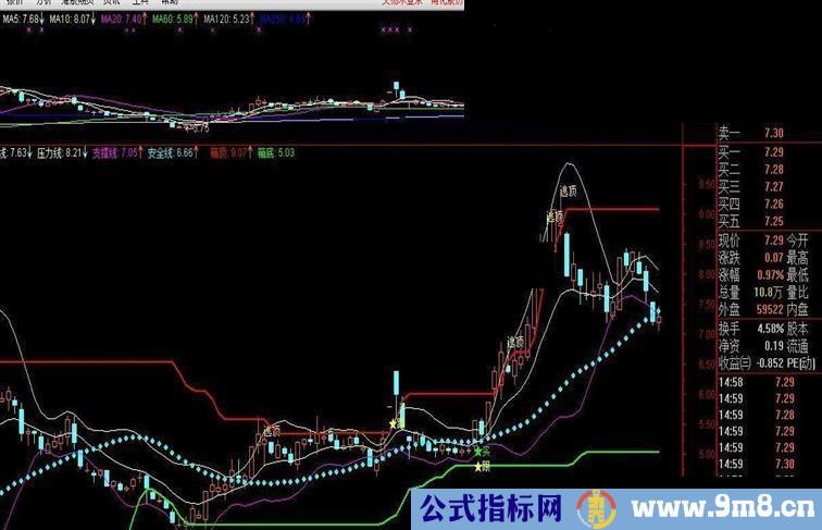 安全线: MA(CLOSE,30), CIRCLEDOT,COLORFFFF00;