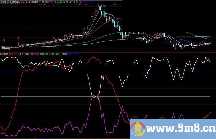 3、[英雄]线值上穿20,表示股票开始走强,可以择机介入。