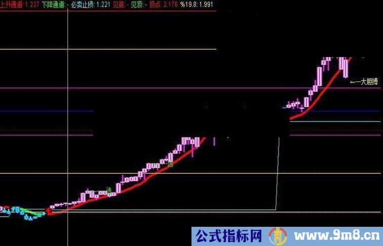 上升通道:IF(VAR11>REF(VAR11,1),VAR11,DRAWNULL),LINETHICK4,COLORRED;