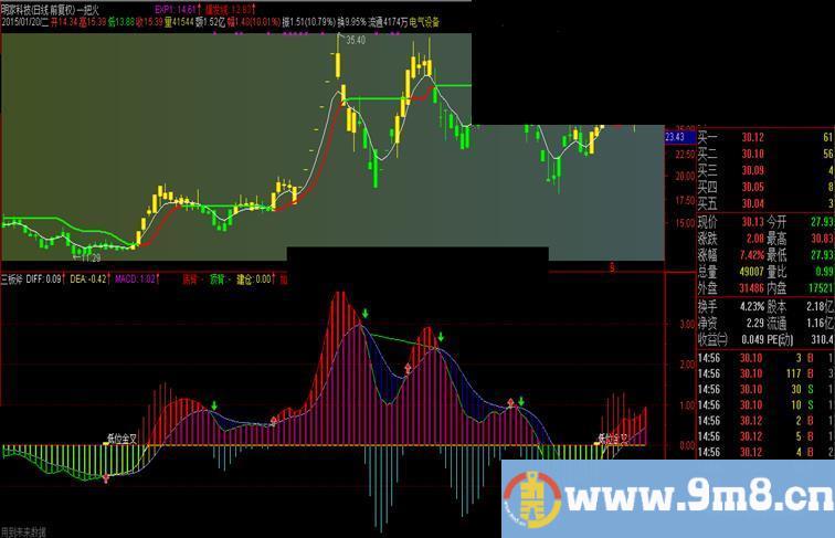 不用太复杂一看就明白:1、K线金黄色出现或黄线上穿红绿线就是买点 2、红线继续持股,变绿就要卖出。复杂变简单,没有必要怀疑,信号出来大胆出手!(直接上指标,源码作附件)